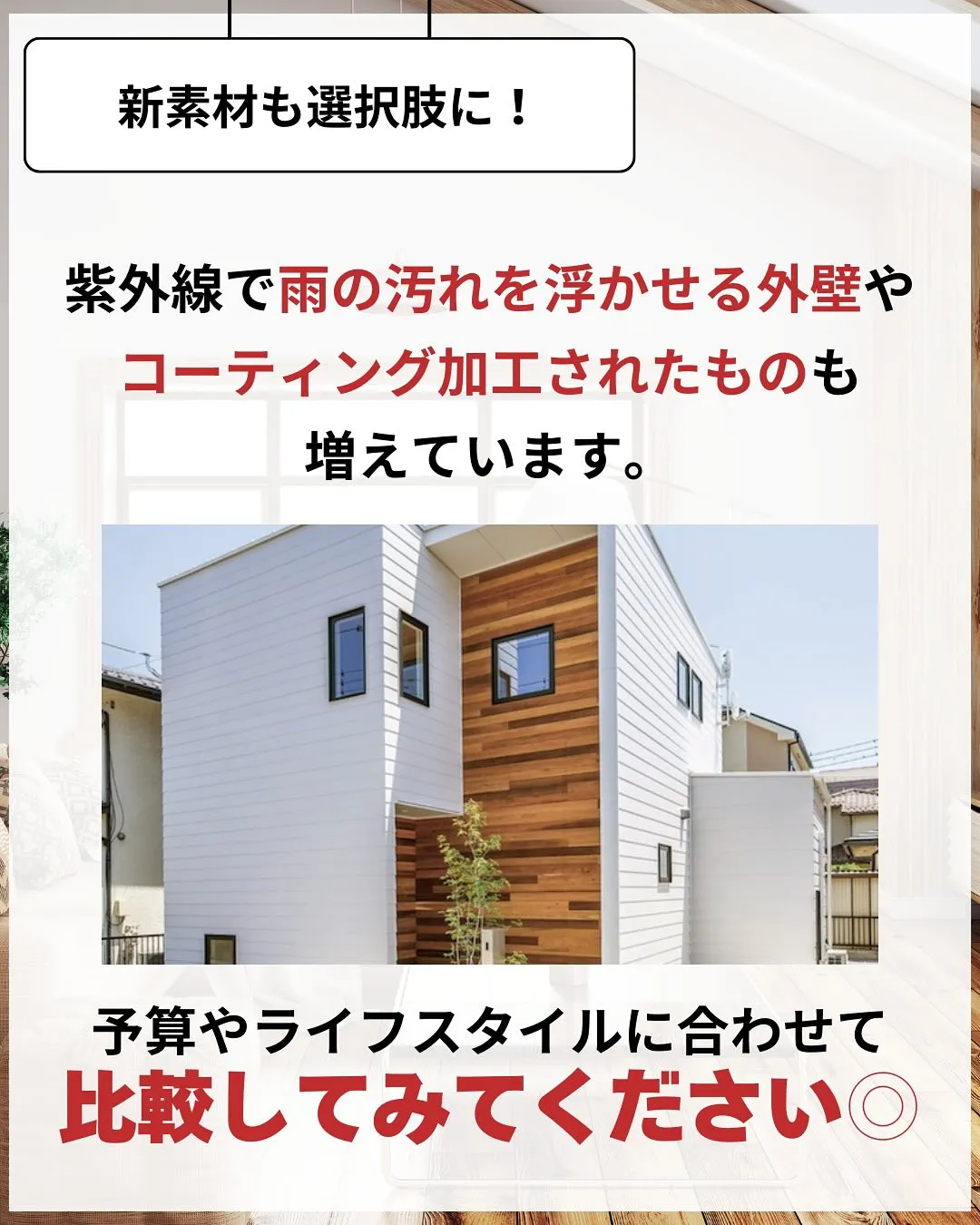 紫外線で雨の汚れを浮かせる外壁や、コーティング加工されたものも増えています。予算やライフスタイルに合わせて比較してみてください。